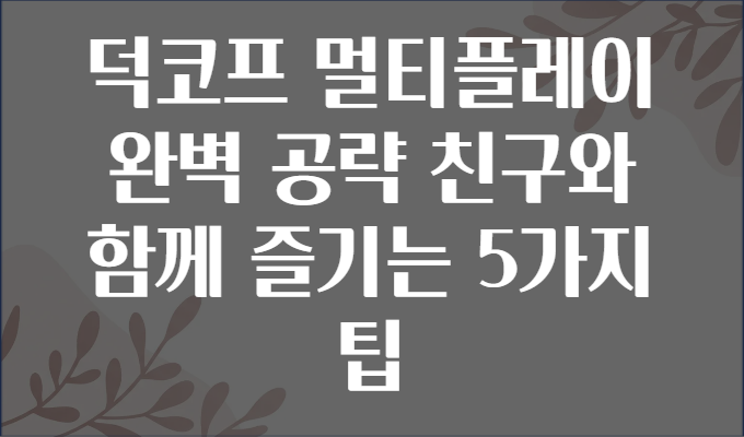 "덕코프(DuckCorp)"라는 멀티플레이 게임을 친구와 할 때, 어떻게 하면 더 즐겁고 효율적으로 플레이할 수 있을까요? 🤷♂️ 혹은 시작은 했는데, 같이 하니까 게임이 더 복잡해 보여서 막막했던 적 있으신가요? 오늘은 친구들과 함께 덕코프 멀티플레이를 완벽하게 즐길 수 있는 5가지 꿀팁을 알려드릴게요! 🦆🎮 친구와의 협동은 물론이고, 게임 실력 향상, 재미까지 보장합니다! 😉